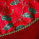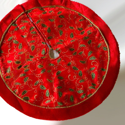 真っ赤なベルベットの生地に、ゴールドのキラキラ光る曲線がクリスマスの気分を守り立てるツリースカートです。